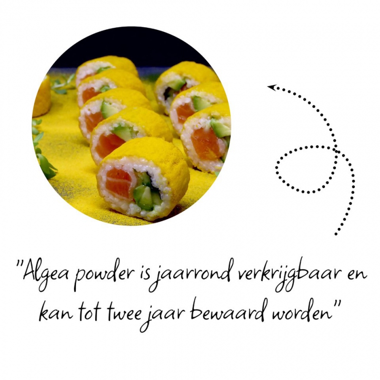 Algae Powder Gold valt op door zijn unieke diepgele, goudachtige kleur. Het poeder heeft een complex smaakprofiel wat zoet begint, langzaam overgaat in umami en een zoetzure nasmaak heeft.
